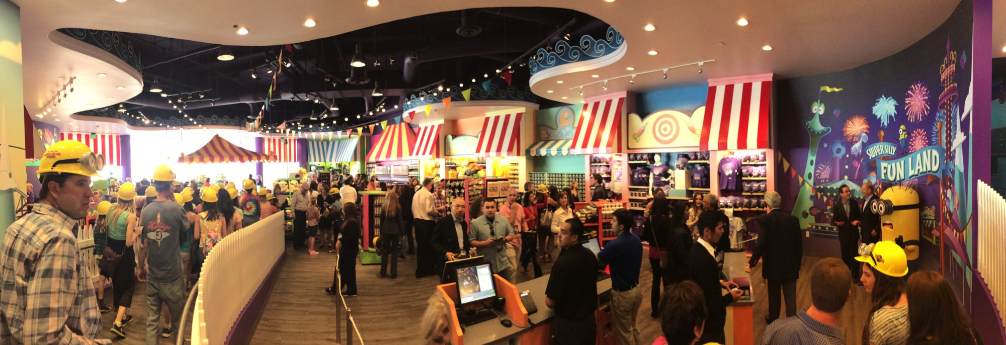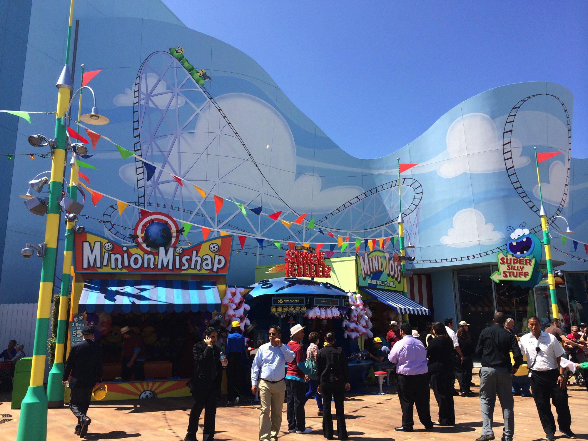 Last week I attended the grand opening of the Despicable Me Minion Mayhem ride at Universal Studios Hollywood theme park. The new ride, which originally debut at Universal Orlando, features a bigger exterior and also includes a Super Silly Fun Land playground, based on the boardwalk pier where Gru falls in love with the three girls he adopted in the movie Despicable Me. After the jump you can find photos I took from the event, giving you an early look at the new ride, playground and store, all of which are now open.